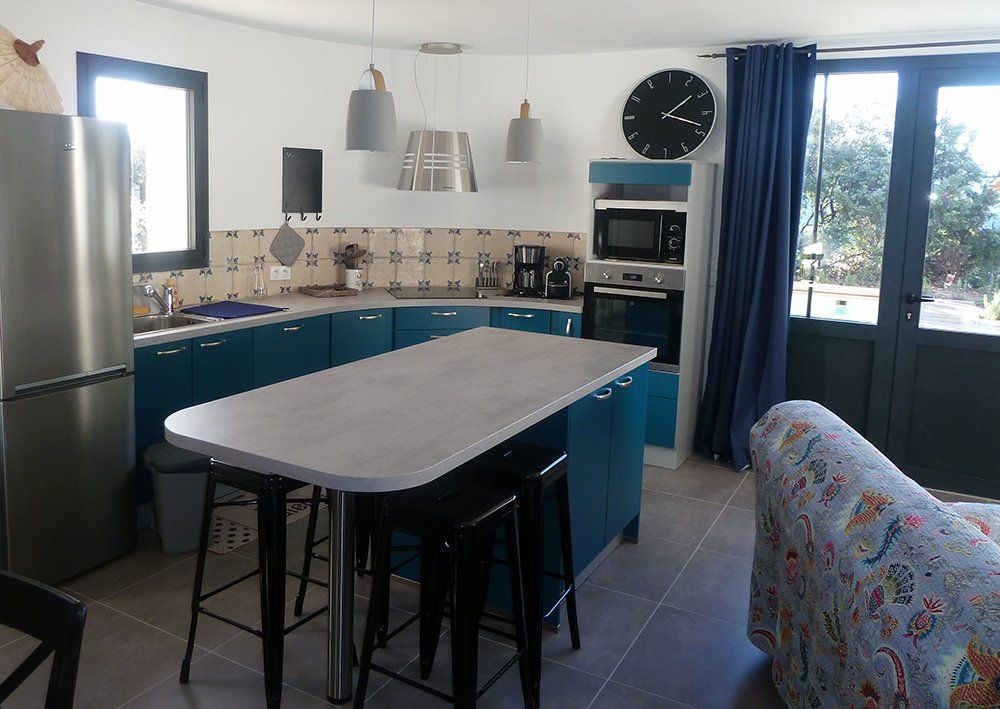 Villa au confort moderne et fonctionnel : Cuisine américaine équipée, grand séjour, 3 chambres offrant jusqu’à 8 couchages : 1 suite parentale en rez de chaussée (lit 160) avec petite terrasse, 1 chambre avec lit de 140 avec un balcon, 1 chambre avec lit de 140 et 2 lits superposés.